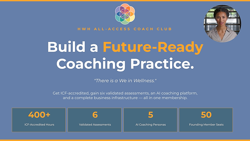 BundleThe HWH Pro Membership gives coaches weekly live ICF mentoring, group supervision, monthly business development support, community, and continuing education - all for $99/month! Stay connected, keep growing, and keep learning.